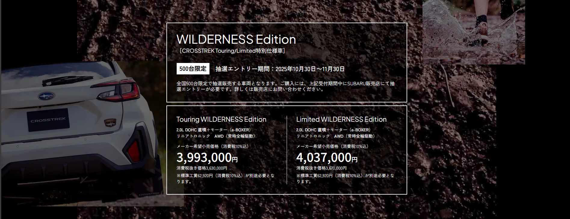 クロストレック WILDERNESS Edition 抽選エントリー受付中!!(~11月30日まで)