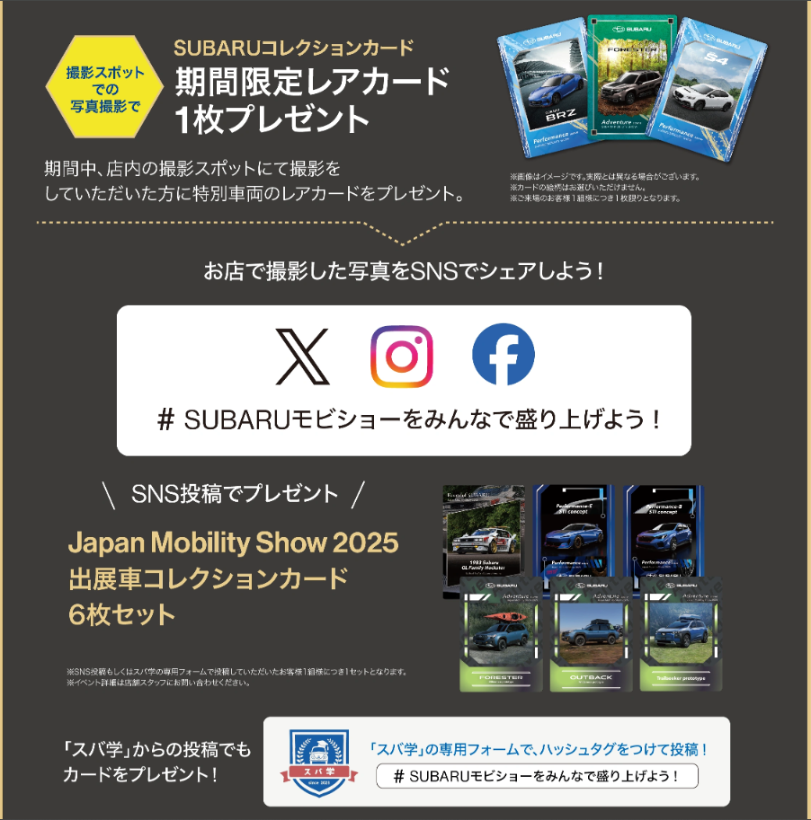 SUBARUコレクションカード 期間限定レアカード 1枚プレゼント!