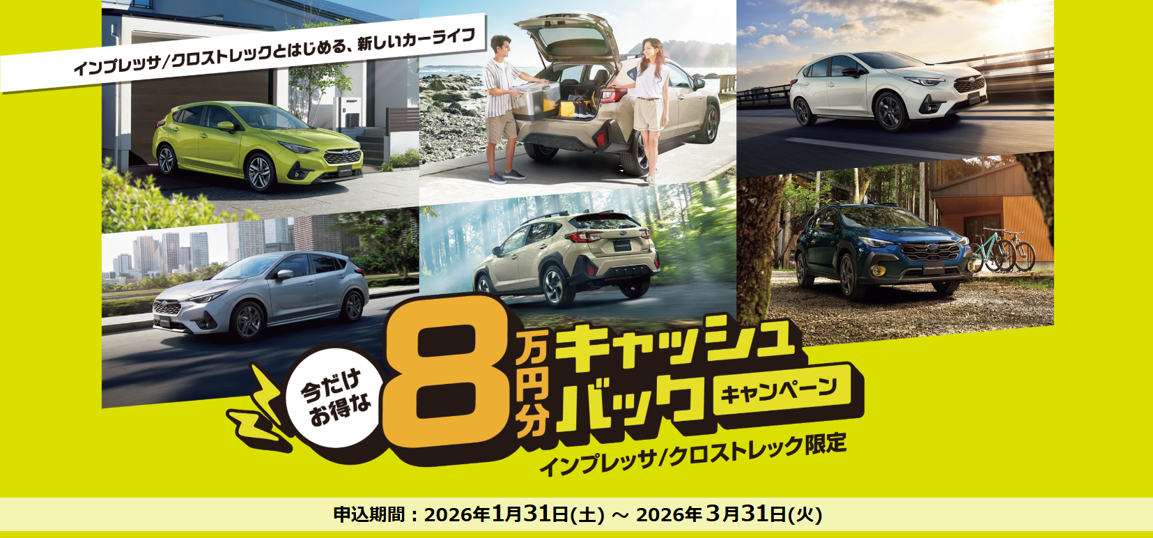 インプレッサ/クロストレック限定 8万円キャッシュバック キャンペーン 実施中!!